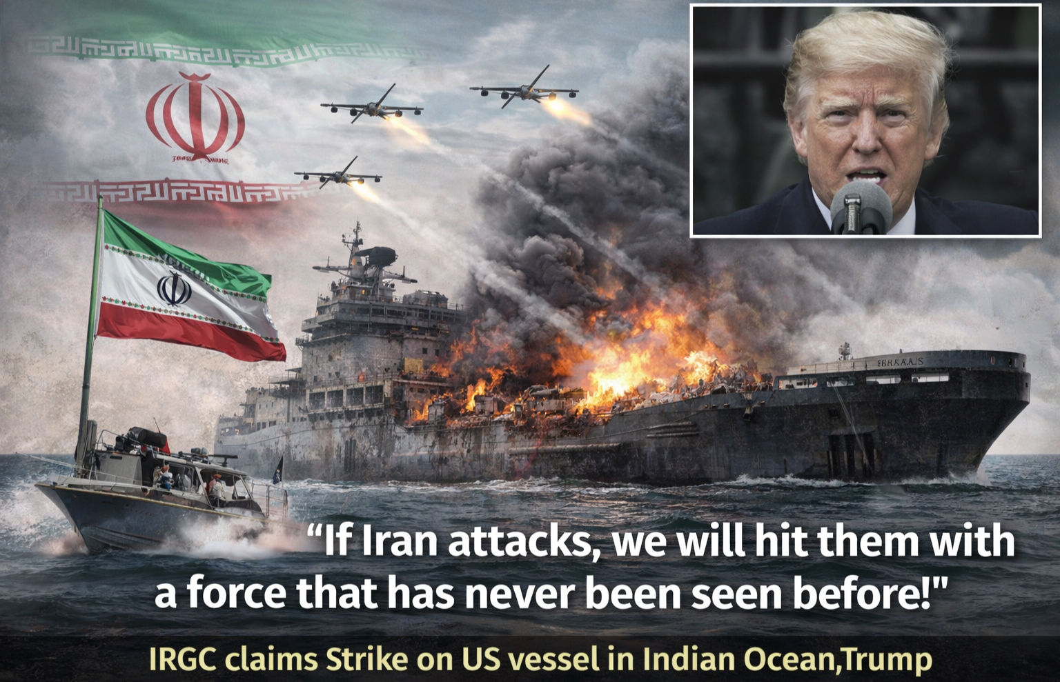 IRGC claims strike on US vessel in Indian Ocean, Trump warns of unprecedented response