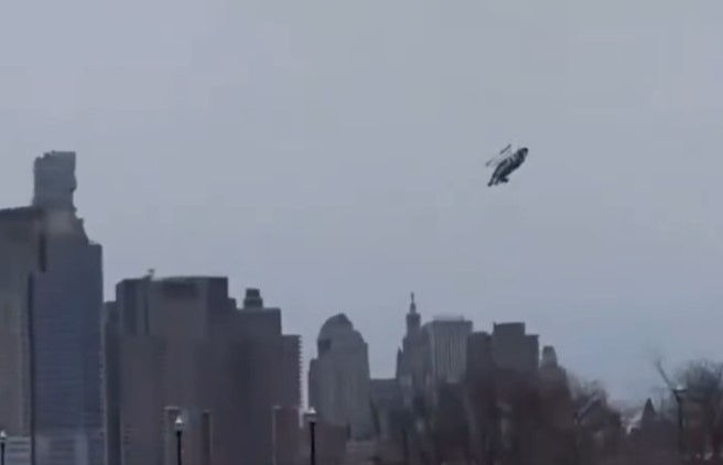 The helicopter reportedly tumbled through the air before hitting the water, and videos circulating on social media captured the horrifying final moments as parts of the chopper spun and fell.