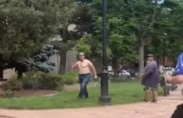 When they arrived at the historic courthouse near 13th and Pearl Streets, a man was waiting with bottles, the organizer was quoted as saying in the report.