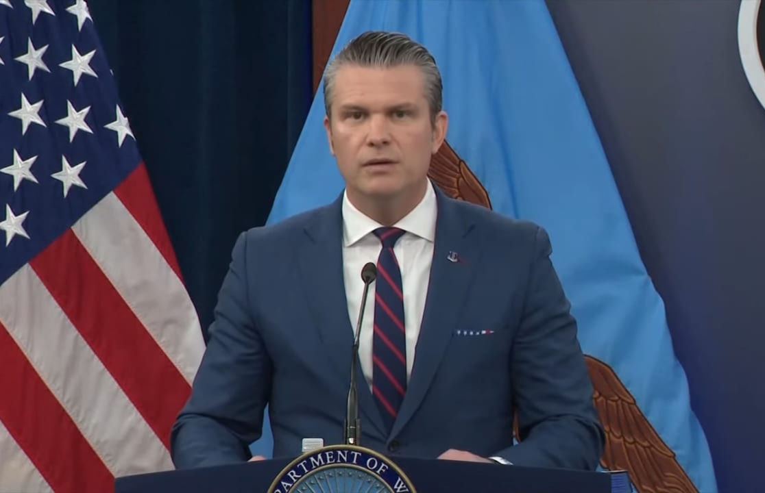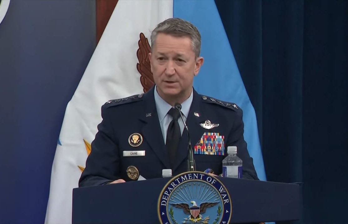 Hegseth appeared alongside Air Force Gen. Dan Caine, Chairman of the Joint Chiefs of Staff, following the launch of Operation Epic Fury — a coordinated US operation carried out with Israel targeting Iranian military infrastructure.