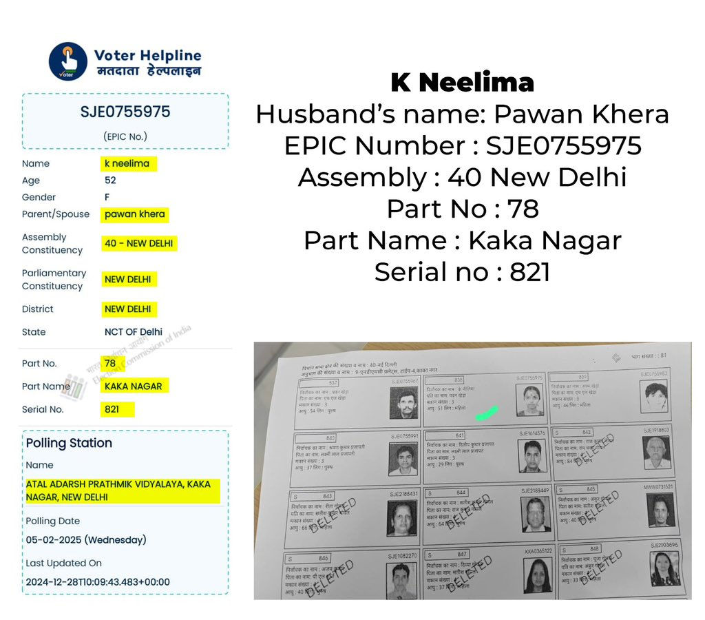 BJP leader and its IT cell chief Amit Malviya on social media platform X, stated that Pawan Khera's wife Kota Neelima, who contested from the Khairatabad segment in Telangana, also holds two active EPICs -- one in Khairatabad and another in New Delhi.