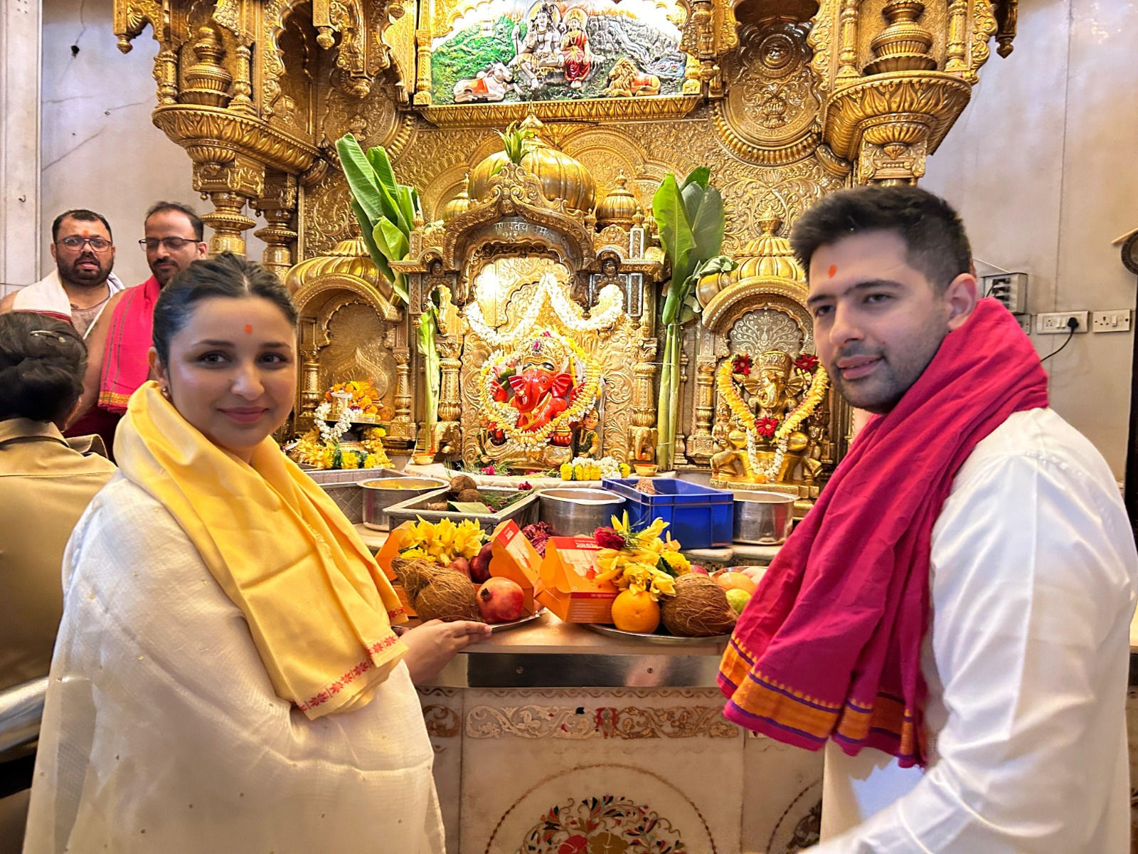 Ahead of LS polls in Delhi, Parineeti & Raghav visit Siddhivinayak Temple