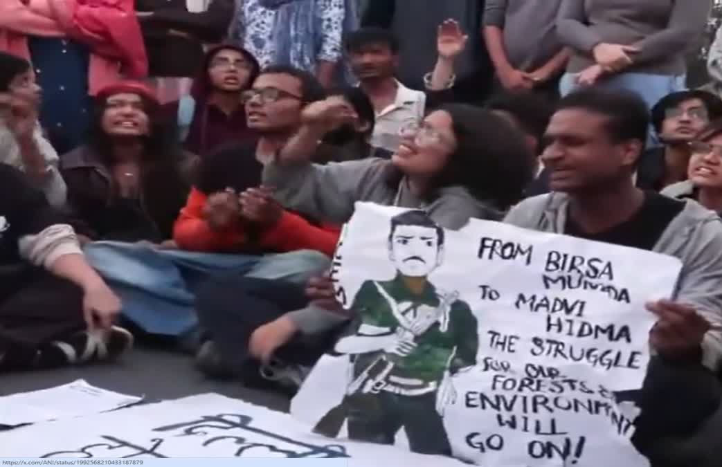Reports indicated that visuals praising Madvi Hidma and calls in his support were observed shortly before the situation escalated. One sign referenced a broader struggle for forests and the environment, mentioning both Birsa Munda and Hidma.