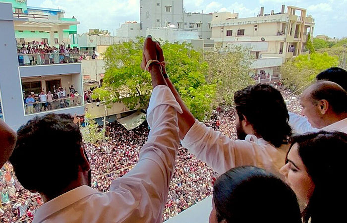 Allu Arjun visited the MLA’s house to show his support on the last day of campaigning. On learning about his visit, a large number of his fans gathered outside the house to catch a glimpse of their favourite star.