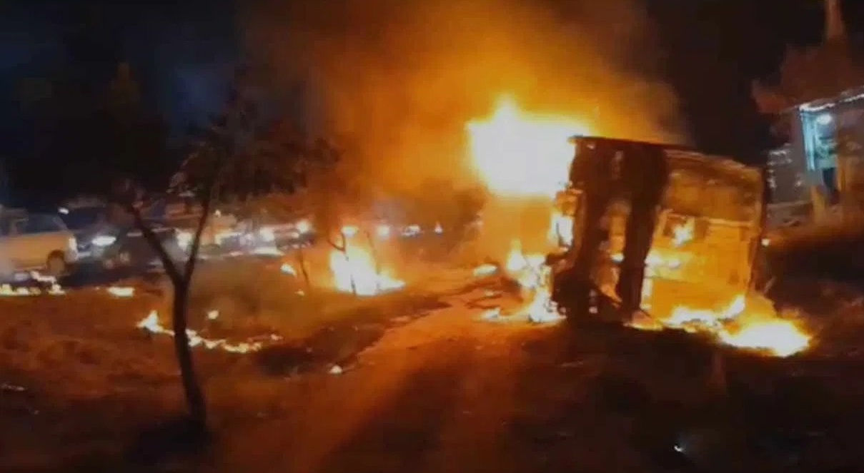 A fire engine rushed to the spot and doused the fire but by then both vehicles were completely gutted.