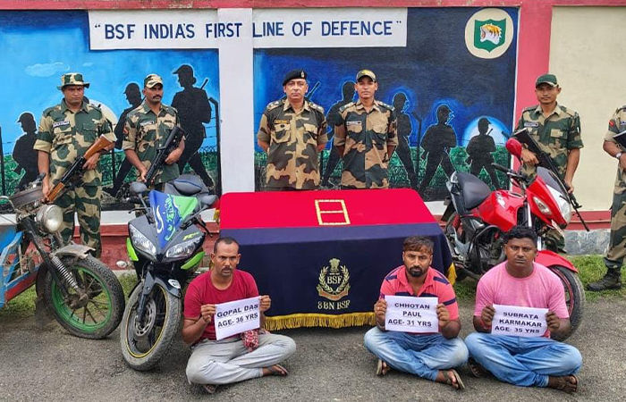 The South Bengal Frontier of the Border Security Force (BSF) made a breakthrough today by apprehending three persons along the Indo-Bangladesh border in West Bengal with 30 gold biscuits weighing 3.4 kg and valued at around ₹2.48 cr in the Indian market.