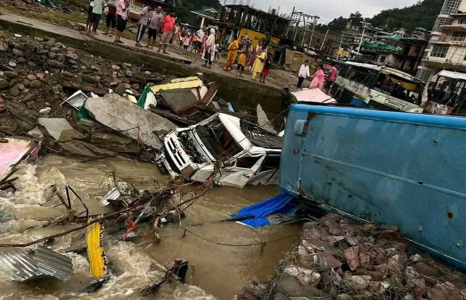 The HRTC buses parked at the bus stand were submerged in the water, and some buses were swept away. Houses located on the banks of the rivulet were submerged in the water, and many vehicles were also swept away in the strong current.