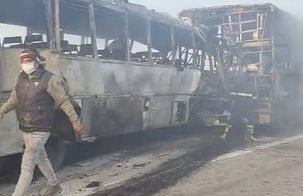 Confirming the development, Mathura District Magistrate Chandra Prakash Singh mentioned that eight buses, including a state-run bus, were completely charred, and two cars were also burned.