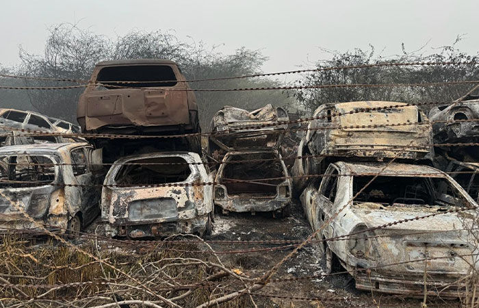 “Total eight fire tenders were rushed to the spot. The fire was in 17 vehicles (four-wheeler) from which two vehicles burnt completely whose registration number was also not traced out,” said DFS Chief Atul Garg.