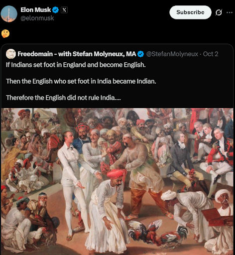 Elon Musk, owner of X known for his provocative remarks, stirred fresh controversy on Thursday after liking and reacting to a post on his platform that strangely asserted that Britain never actually ruled India.