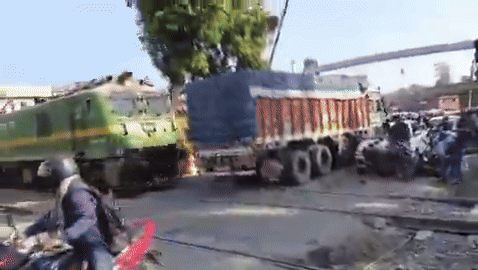 Eyewitness accounts and video footage from the scene showed several two-wheeler riders attempting to cross the tracks moments before the train arrived. While the bikers managed to move aside after noticing the approaching train, the truck remained stuck on the crossing.