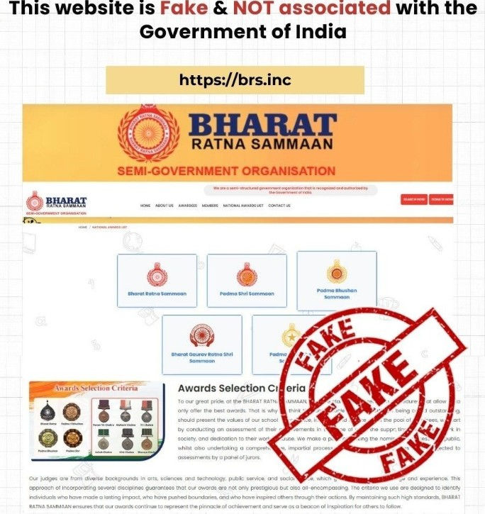 "It also claims to confer prestigious national awards such as Bharat Ratna Samman, Padma Vibhushan Samman, Padma Bhushan Samman, etc," the PIB post said.