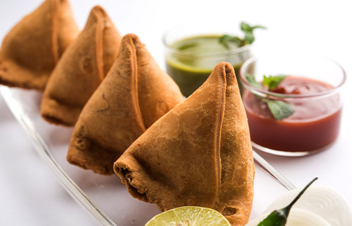 | Samosa served with sauce and chuttney (image: Envato Elements) |