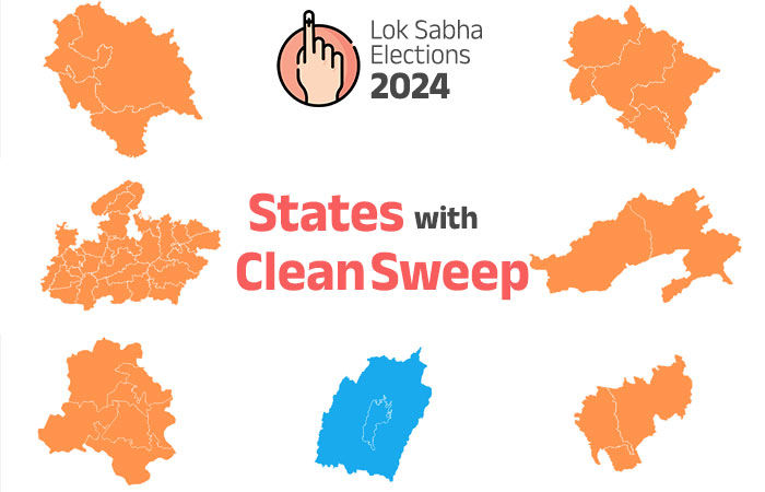 The Lok Sabha Election result gave the NDA 294 seats and 234 to INDIA. In many states, the tables were turned on the respective ruling parties, and in many, one party ruled all LS seats. BJP’s fortress, Gujarat, was not to be a clean sweep as the ruling party only managed 25 seats there. However, below are the states where one party won all the seats.