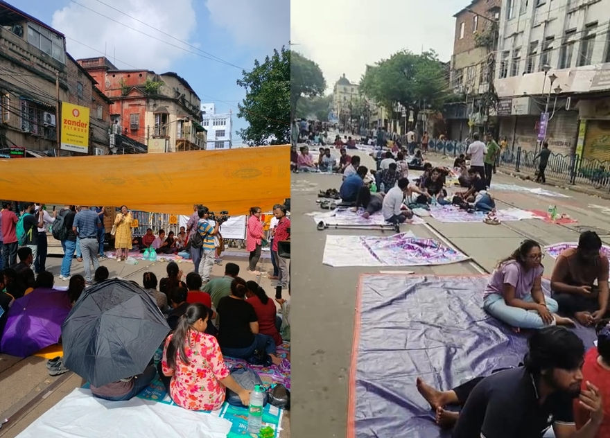 The protest started on Sept 2 afternoon near Kolkata Police headquarters and continued with the protesting doctors showing no signs of fatigue following their nightlong protests under the open sky and on the streets.