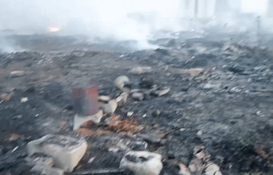 Smoke was still rising from the scrap and debris, and a fire tender remained on-site as a precaution. A detailed search will be conducted once the fire is fully extinguished, officials said.