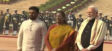 Sri Lankan President Anura Kumara Dissanayake who is on a three-day state visit to New Delhi, was accorded a grand ceremonial welcome at the Rashtrapati Bhavan on Monday, marking his first overseas visit as head of state.