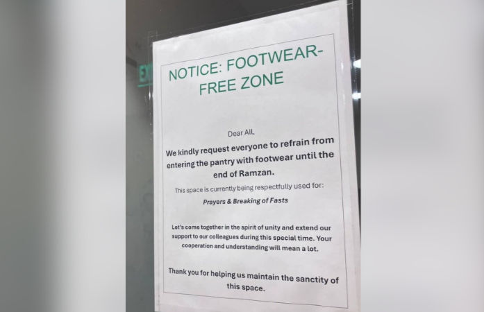The controversy began when advocate Ashutosh Dubey shared a post on social media platform X, citing messages from an alleged employee. The post claimed that a pantry area at the company’s Goregaon office had been designated as a “footwear-free zone” to accommodate prayers and iftar during Ramadan, and that employees were encouraged to follow the practice in the spirit of unity.