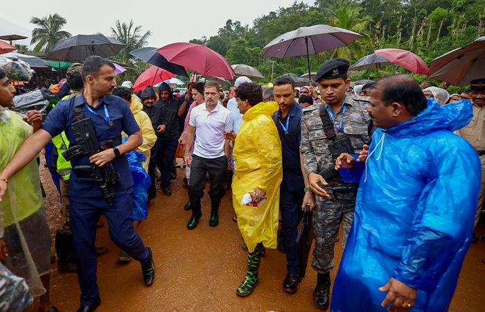 After visiting some relief camps, Rahul Gandhi said, “I have been here since yesterday. As I said yesterday, this is a terrible tragedy. We went to the site yesterday. We went to the camps, we assessed the situation there. Today, we had a meeting with the administration and the panchayat. They briefed us on the number of casualties they expect, the number of houses that have been damaged and their strategy. We have said that we are here to help in any way possible. Congress family would like to commit to building 100 plus houses here.”