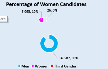 According to the report, out of 51,708 candidates who contested Lok Sabha and Assembly elections across the country, only 5,095 (10%) were women.