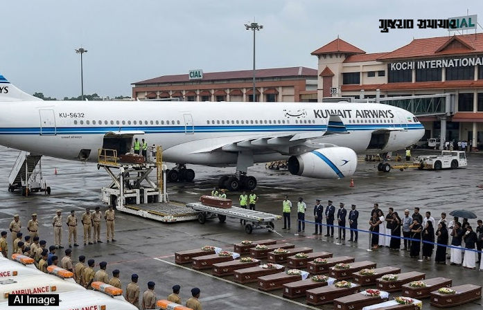 The special Kuwait Airways flight KU5632 reached Kochi via Colombo. Notably, this was a dedicated flight operated solely to transport the bodies, with no passengers on board.