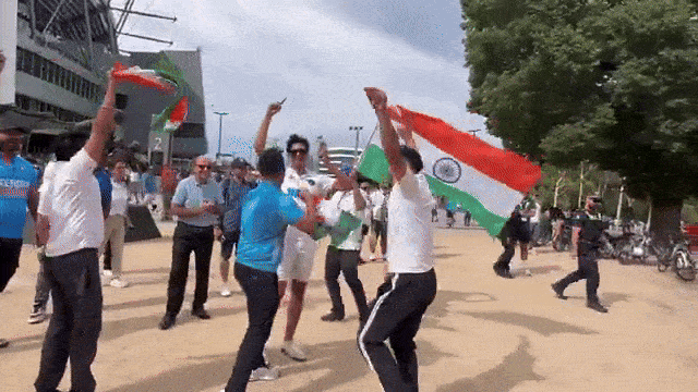 Around a dozen Khalistani supporters were seen waving flags and shouting anti-India slogans, which was strongly opposed by Indian fans.