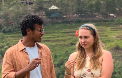 When Hannah flipped the question back to Deepak, he responded with a sarcastic remark: “That is arranged marriage, no?” He joked that his parents had supposedly gone to Michigan to find Hannah, to which Hannah humorously added, “Or maybe my parents traveled from the US to India in search of a husband.”