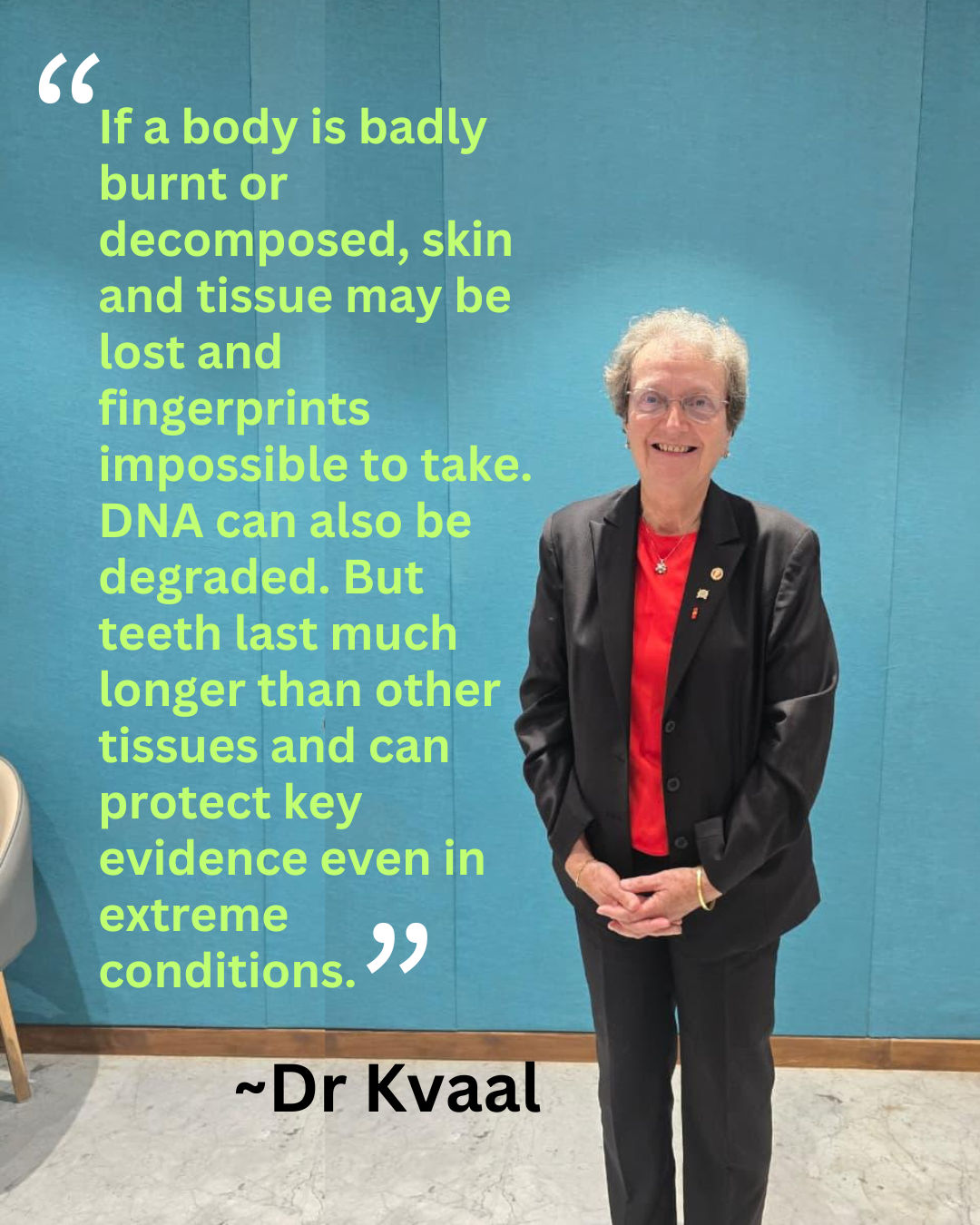 Dr Kvaal, who has taught forensic odontology for years and advised international police agencies, explained that teeth often survive conditions that destroy fingerprints or make DNA retrieval difficult. “If a body is badly burnt or decomposed, skin and tissue may be lost and fingerprints impossible to take. DNA can also be degraded. But teeth last much longer than other tissues and can protect key evidence even in extreme conditions,” she said.