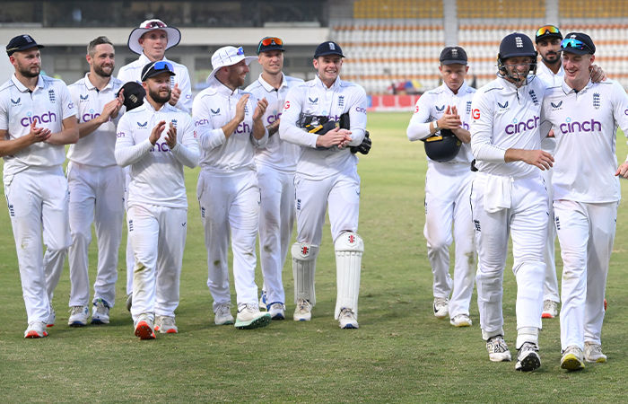 But Leach provided the breakthrough when he trapped Salman lbw for 63, as Pakistan burnt a review. He then held on to a sharp return catch of Shaheen Shah Afridi and then had Naseem Shah stumped easily. With Abrar Ahmed not coming out to bat after being in hospital since last evening due to fever and body ache, it meant England achieved one of the most remarkable wins in Test cricket.