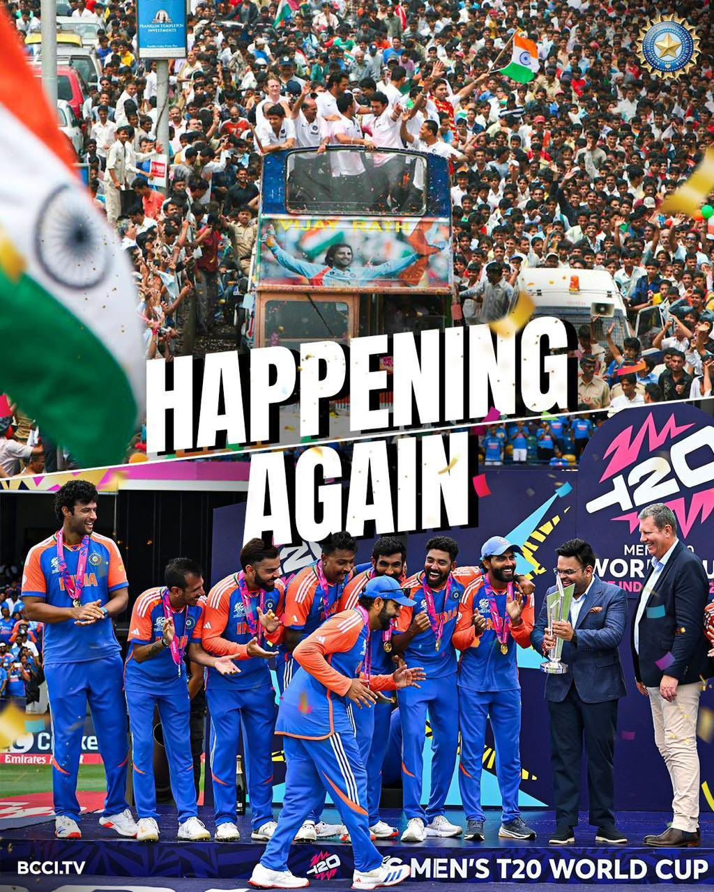 The Board of Control for Cricket in India (BCCI) secretary Jay Shah gave an update in a social media post 'X', stating, “Join us for the Victory Parade honouring Team India's World Cup win! Head to Marine Drive and Wankhede Stadium on July 4th from 5:00 pm onwards to celebrate with us! Save the date! #TeamIndia #Champions @BCCI.”