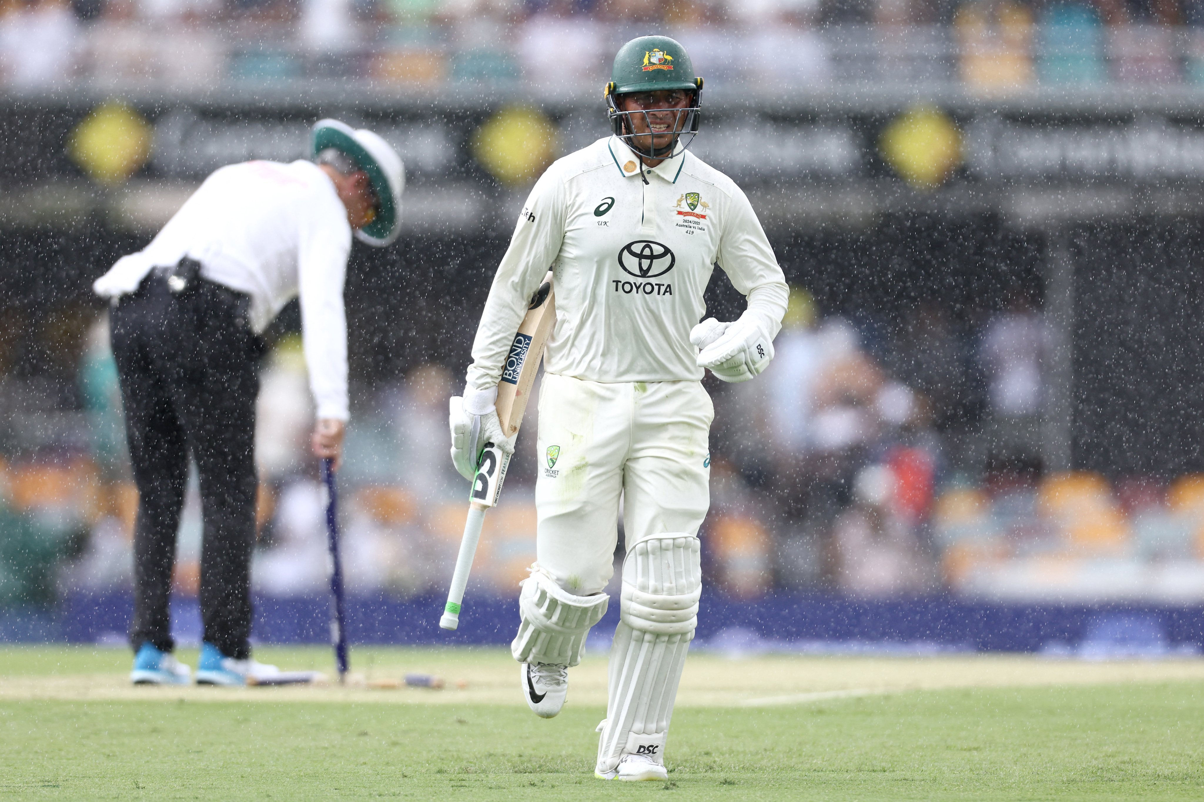 Khawaja took advantage of it when Siraj, who faced boos from the Brisbane crowd, bowled a rank short ball and was easily pulled through mid-wicket for four more. The first rain interruption of the session came in 5.3 overs, and caused players to go off the field for 30 minutes.