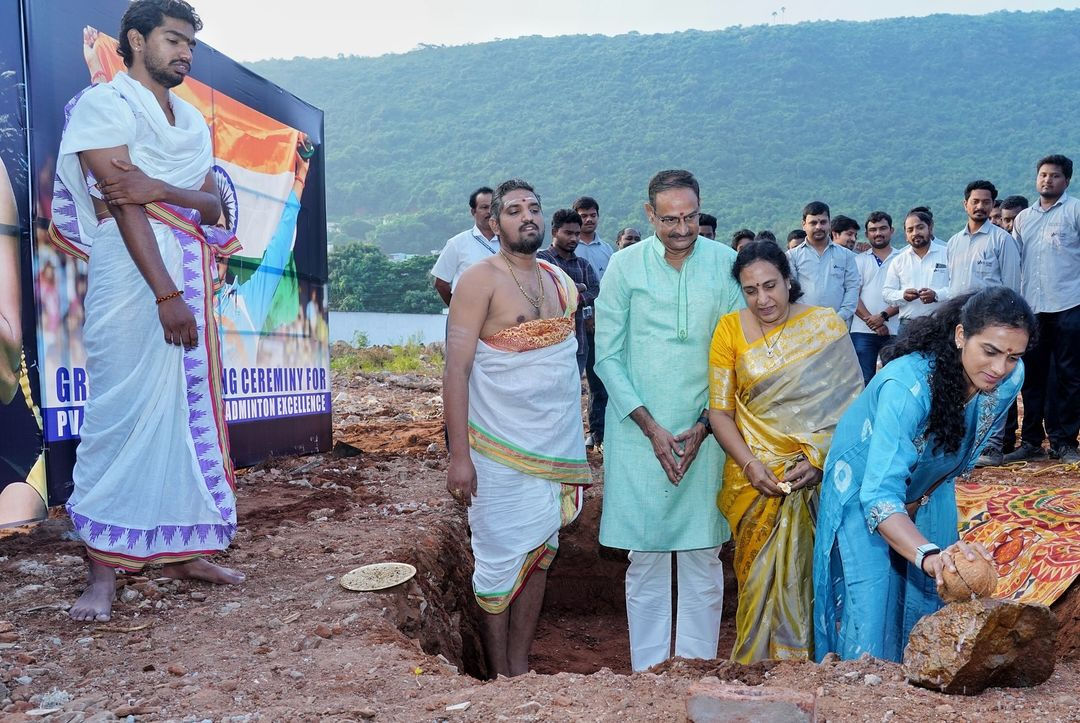 Sindhu performs Bhumi Puja for badminton academy in Vizag